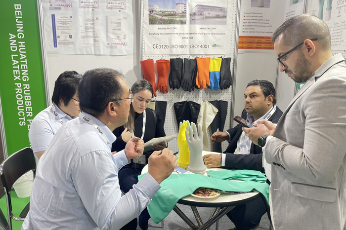 华腾橡塑还走出国门参展国际展会。10月11日,公司首次参展日本东京五金工具及劳保用品展览会,将中国优质乳胶手套带到国际市场。10月24日,公司销售团队又整装出发参加德国杜塞尔多夫工业防护及职业健康展览会(A+A),在这个世界上工作防护、生产安全及职业健康行业领域内规模最大的展会上,展示中国的优质手套产品。